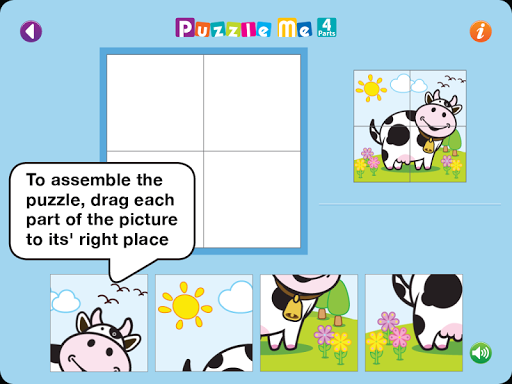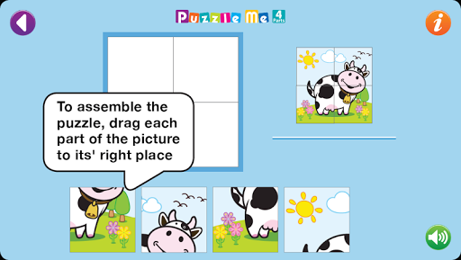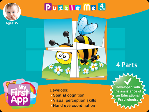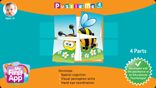 Puzzle Me 1 (4 parts) - Is designed for children aged 2 . Each board features a 2 by 2 square grid.