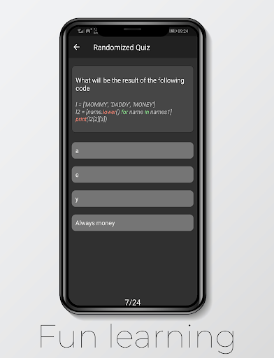 Python Fun Quiz is a free quiz you can play on your phone. Our core belief is that learning is done through fun. Everything in our app is designed so that you can enjoy yourself the most, while learning. Having fun doesn't mean the content you'll get is of poor quality. On the contrary, we believe that the humorous touch increases the learning experience and allows the user to remember the material and avoids frustation and despair, which can easily occur with technical material.