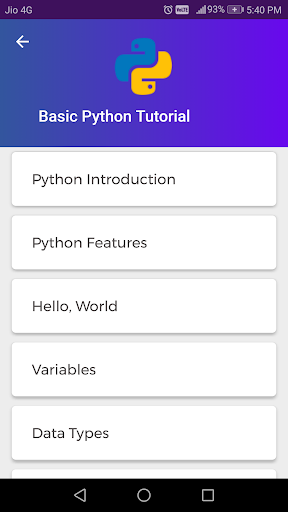 This is a very good application give all the necessary basic knowledge abouth python in a simple and understandable way i deeply appreciate the work .it also provide us a compiler to clear our doubts thanks for this application