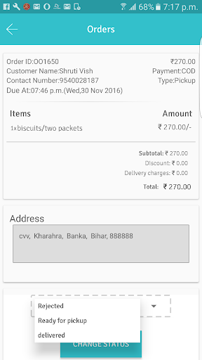 -Update the status of accepted orders accordingly.