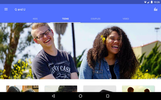 Q & U is designed for people on-the-go. Everyone has a phone but no one is talking. Q & U will change that! Driving the kids to school? Turn off the car screens and have the kids choose a Q & U question for the entire family to answer. Tucking the kids in bed? Pull up a question to ask. Bed time is the best time to get answers from your kids because they don't really want to go to sleep. Struggling for deeper conversation on a date night with your spouse? Explore dreams, goals, and interests with questions from Q & U.