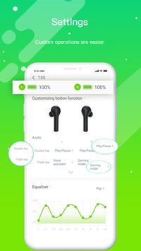 QCY, a phone App managing and setting TWS Bluetooth earbuds, features pairing animation, button customize, EQ, find phone, OTA update and language switch.