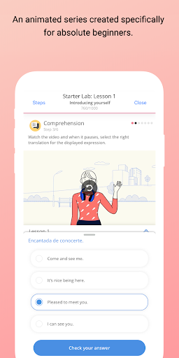 Learn one or more languages choosing from English, German, Spanish, Portuguese or French, no matter what your starting level in any of them. You can learn with a range of specific modules depending on your objectives and preferences, and a virtual coach will guide you throughout your learning experience. Regular level tests allow you to measure your progress and assess your proficiency according to the standards of the Common European Framework of Reference for Languages (CEFR).