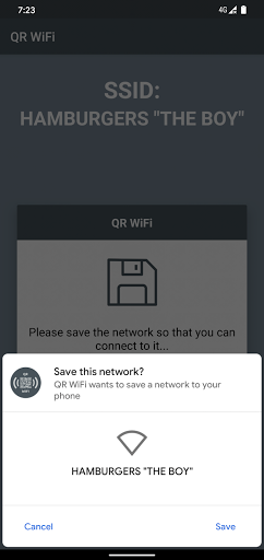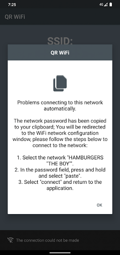 - Now you can use the application to connect to networks with standard WiFi QR formats.