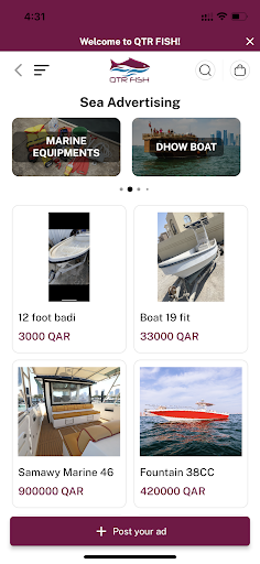 QTR Fish App is the first app in Qatar that sells high end quality marine tools, fishing tools and fresh fish online and deliver your order to you no matter where you are!