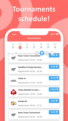 You can find out the schedule of games at any time and find the poker tournaments that interest you.