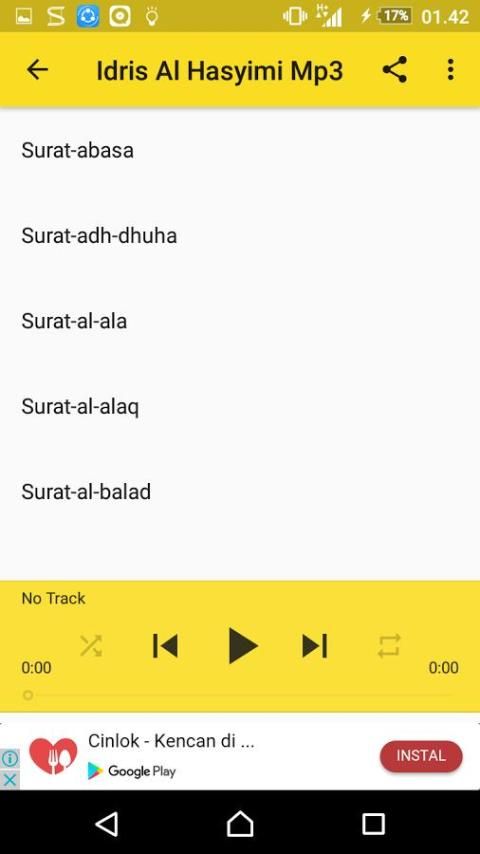 If you want to listen to the latest murottal murottal now as popular then you should try the latest application of this murottal Koran. By using this application you can listen to various murottal of Qori Idris Al Hasyimi Offline has a melodious voice and a beautiful voice be heard. IDRIS AL Hasyimi is one qori with a melodious voice and murottal murottal wonderful to listen to.