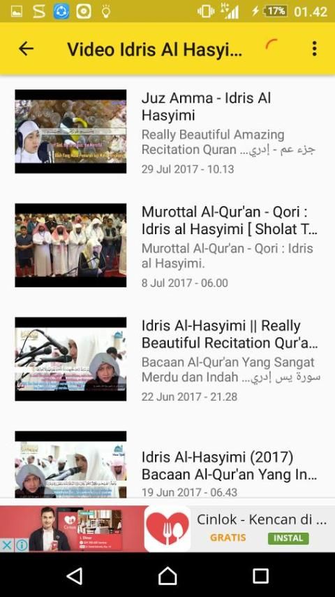 Let's listen to Qori Idris Al Hasyimi mp3, collection of the latest collection Qori murottal Idris Al Hasyimi Offline, and video Qori Idris Al Hasyimi which is very nice and cool makes you amazed and felt calm and comfortable to listen to his voice.