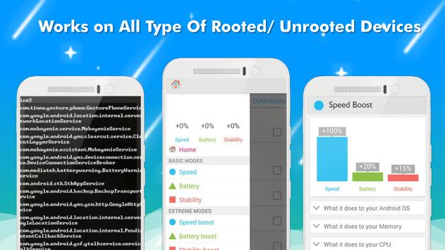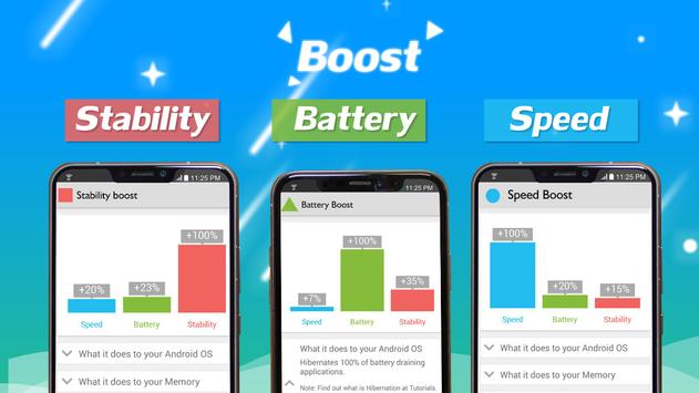 Stability Boost mode make your smart phone more stable in overall condition. This mode hibernates all the poorly programmed apps and settings to consume battery and processor speed, enhancing overall condition of your android smartphone.