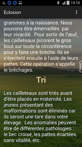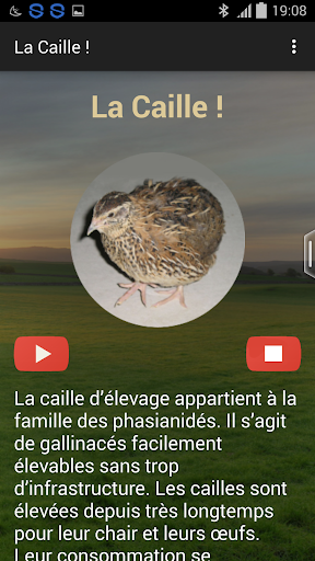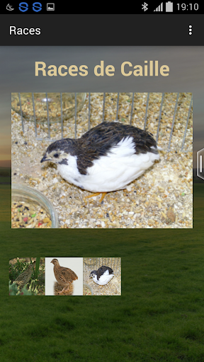 Quail rearing is a comprehensive guide that can allow a beginner to become a coturniculteur aguerri.En Quail rearing effect covers all aspects of the coturniculture (Husbandry Quail) such as breeds of quail, Food, prophylaxis, Cages, Livestock equipment , Mating Quail Ponte, storage and incubation of eggs, fattening, slaughter and sale of quail and many plus.Elle you can buy quail and equipment in Application.Élevage Caille also contains a library and a video library ( breeds quail, Eggs, Incubators, Maternity, animal husbandry equipment ...) .. and has a feature (pLAY STOP) that reads the text aloud (Practice for the lazy). I invite you to massively download this app to learn about the countless secrets of Quails.
