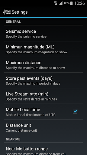 It is also possibile to enable/disable a NOTIFICATION ALERT for any NEAR earthquakes