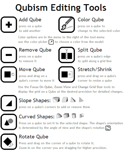 •Qubes that are too close or two far away from the centre of the red axes will be cropped by OpenGL. Keep the red axes near the area you want to work on using the focus and pan tools before zooming in.