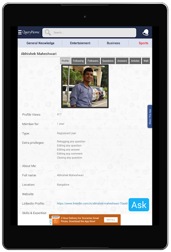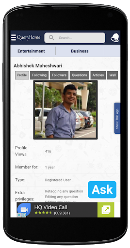 QueryHome is a Question Answer App (Q&A), which helps you to Ask Questions and get Answers from experts in social setup. At QueryHome Question App you may Ask Questions and receive Answers from distinct types of topics based on various categories i.e. Technology, Business, Puzzles, Sports, GK, and Entertainment.