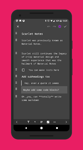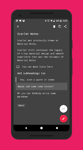 Scarlet (previously Material Notes) offers a simple no hassle interface for adding notes in a beautiful material design.