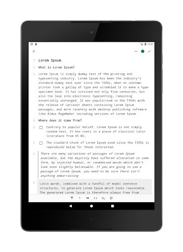 Fantastic !!! One of the best apps in the play store especially for notes. Take the time to learn this apps features and you will not be sorry you did. It has flawless syncing between devices and Google drive.