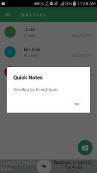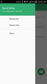 Quick Notes support you write some text or draw an image to take notes. Besides, You can backup your notes and restores. Keywords : Note, quick note, take note, note taking
