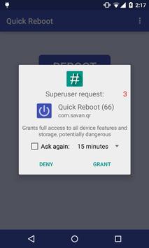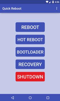 If you try lot of Kernels,ROMs and do ADB stuff, then this app is for you.It allows to boot your device into Recovery mode, Bootloader mode with just a click. It frees you from pressing odd combinations 'Power' and 'Volume' button to open Recovery mode or Fastboot mode. ROOT is required to run this app. This app also has 'Reboot' & 'Shutdown' button which comes handy to turn your device ON/OFF , incase your Power button is not functioning properly.