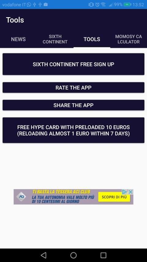 The app allows you to quickly access the features and concepts behind the Sixth Continent portal.