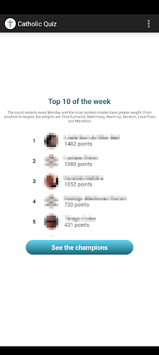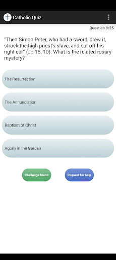 In the Catholic Quiz you have fun and learn with thousands of questions about the Catholic Church and Christianity. It offers questions on various subjects / categories: Jesus / Gospels, Holy Mass, Commandments, Sacraments, Bible (Old Testament and New Testament), Apostles, Miscellaneous / Church History, Deadly Sins, Popes, Prayers and Saints.