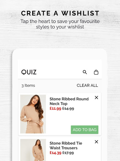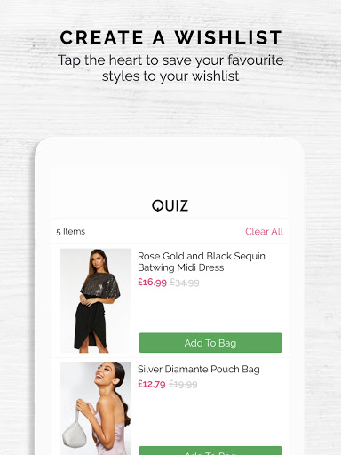 • Don’t have the time to shop right now? Save your favourite styles, build your wish list and add to bag later - just tap the heart