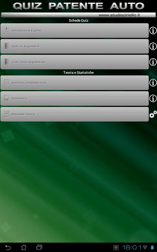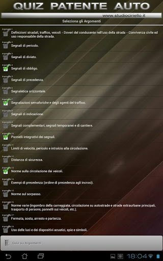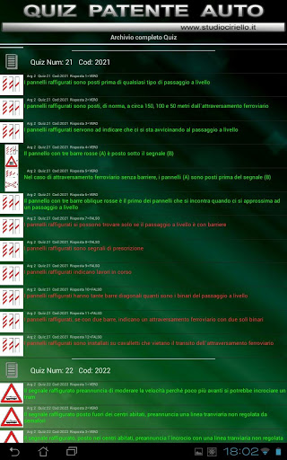 - Ipakita Kumpletuhin ang listahan ng lahat ng mga pagsusulit: Ipakita ang lahat ng mga tanong ng pagsusulit na hinati sa mga paksa na may mga may-katuturang tunay / maling sagot, na nagpapahintulot sa memorization na may koneksyon sa teorya.
