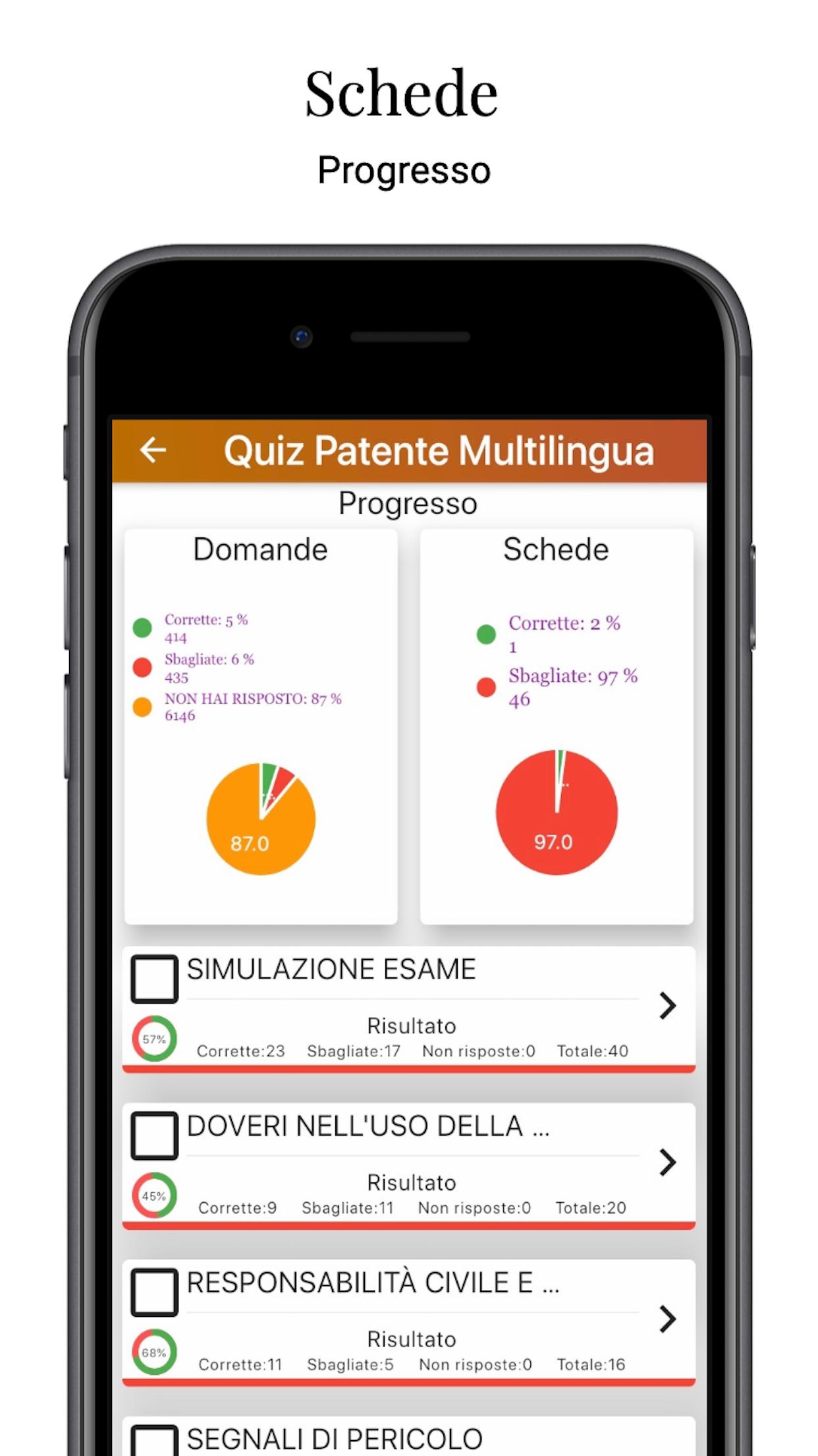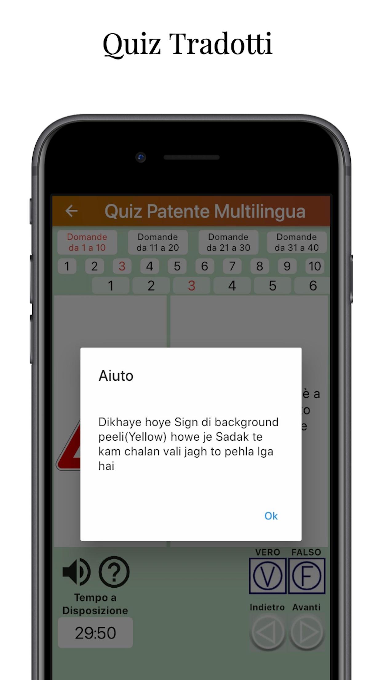 The quizzes are also translated into Punjabi,Hindi,Urdu,English,French,Spanish,Arabian language to help people who have difficulties with the italian language.