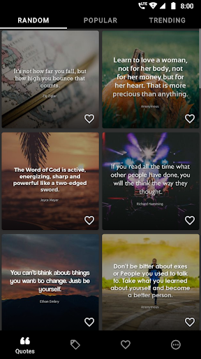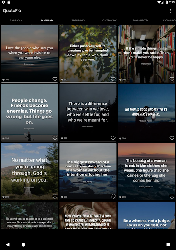 - Popular, Daily random, Trending quotes