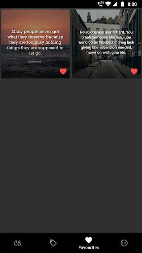 - Your own favourites and downloaded quotes