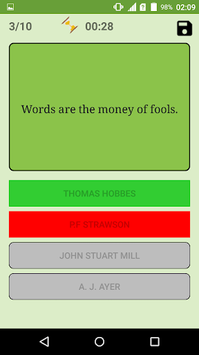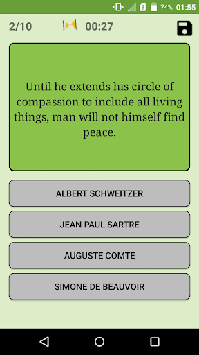 This quiz app brings you thousands of quotes from some of the greatest philosophers (both Western and Asian) over the centuries. From Aristotle to Confucius, from Immanuel Kant to Bertrand Russell, we have got them all. You can play our quiz of quotes where you have to guess the correct author. So, if you think you know all about philosophy and philosophers then this app is for you.