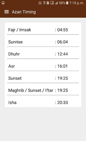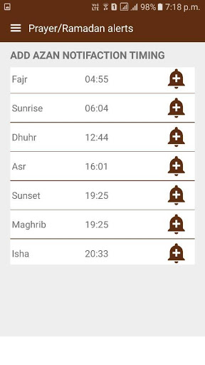 • Fasting times (Imsak and Iftar) during Ramadan based on your location.