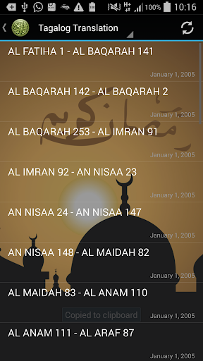 This App is your unique mobile source for high quality MP3 translations of the meanings of the Qur'an in Filipino Languages