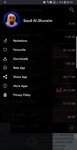 In this Ramzan 2018 liste MP3 Quran offline and online mode in the beautiful voice of Saud Al-Shuraim. To listen Tilawat Quran without internet you need to download all quran surah from app then you can listen Quran Recitation from downloads screen.