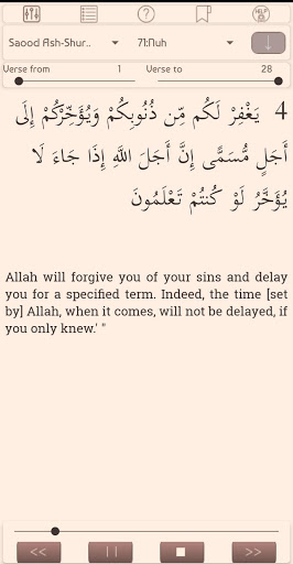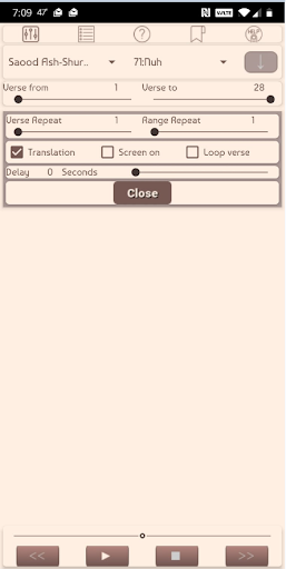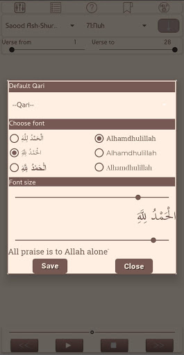 * Bookmark specific selection (Qari, surah, repetition range). Handy to quickly load from the bookmark instead of selection each time.