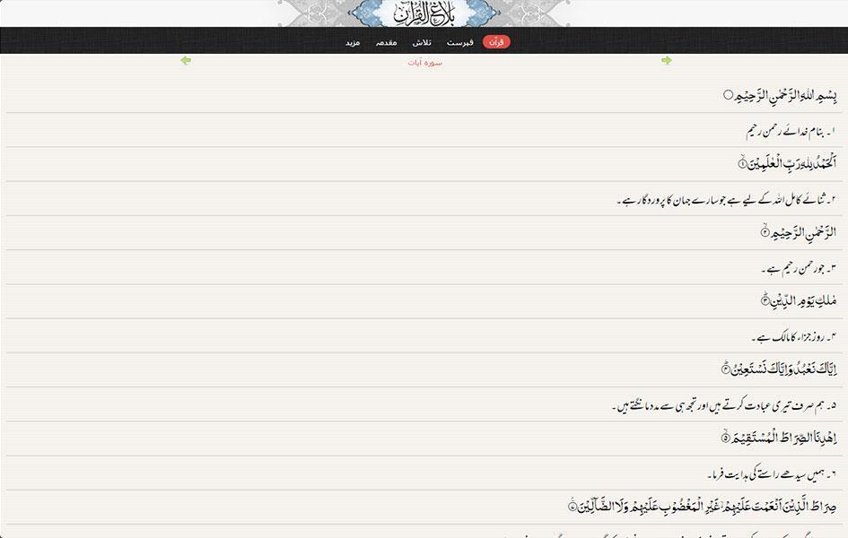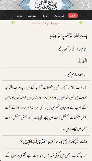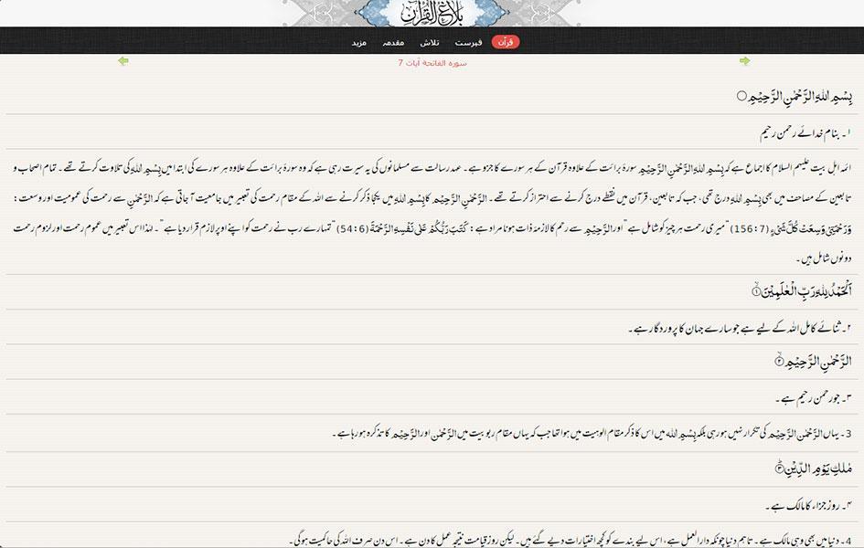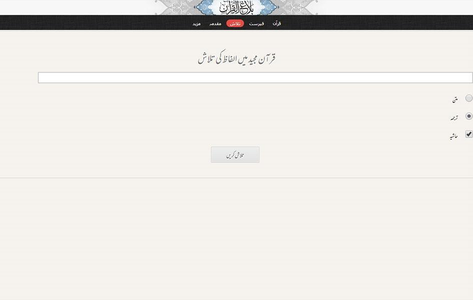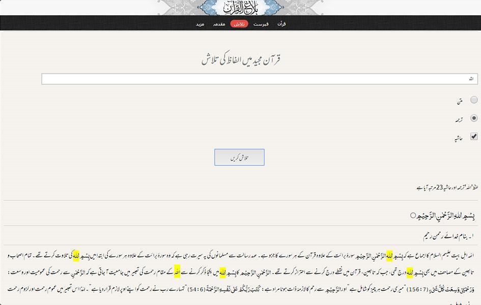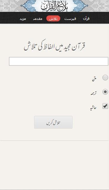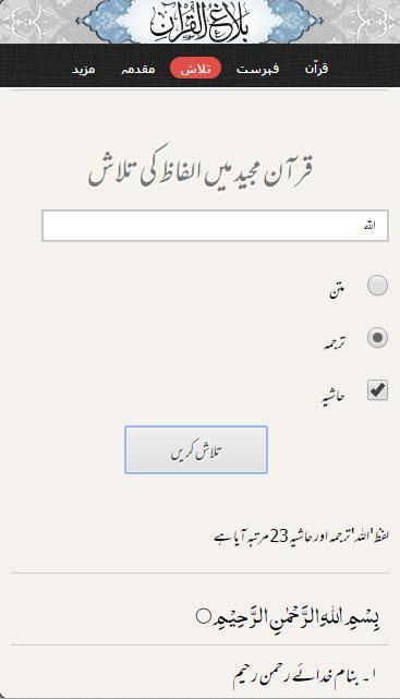 Balagh ul Quran with Urdu translation and Hashia (Short Tafseer) Last updated in Nov 2016, with IndoPak Script and Searchable in Quran, Urdu Translation, and Hashia.