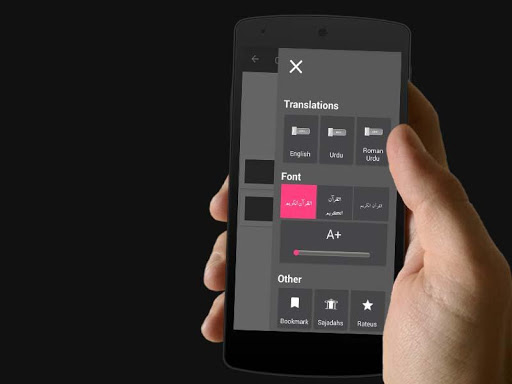 is an android smart phone app with audio Urdu and English Translation. you can read Quran and listen it .you can change font size. and turn on/off translation. Transliteration.