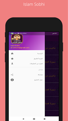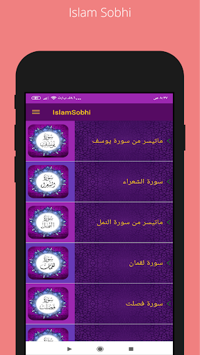 Application of the Koran voice tortured reader Islam Sobhi, the fence in full without working without the Internet, clear and easy to use and beautiful interfaces and colors 2020 new year free download Purple color Hear great sound