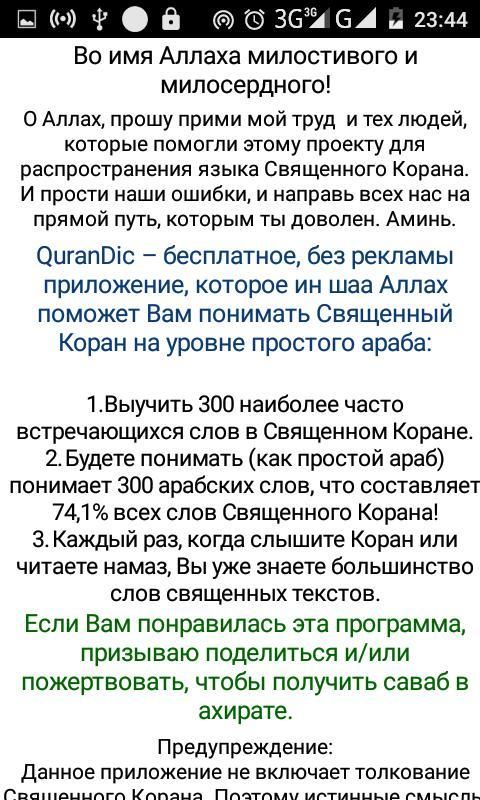 QuranDic – бесплатное, без рекламы приложение, которое ин шаа Аллах поможет Вам понимать Священный Коран на уровне простого араба: