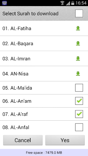 - Download current surah or multiple surahs
