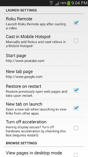 Cast online videos from your Android device to Roku! This app is intended to help cast videos embedded in websites that don't have a Roku channel.