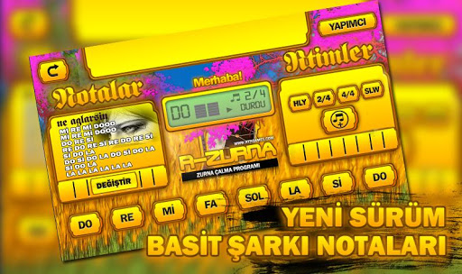 لعب Zurna من جهاز الكمبيوتر والكمبيوتر اللوحي. ميزات: كتالوج ملاحظة أغنية بسيطة. * بطيئة * 4/4 أضعاف الترفيه مع هذه rtims. - انظر أي مذكرة أنت تضغط وما rtim أنت بفضل الشاشة.