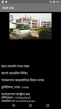 Rapid Action Battalion or RAB is an elite anti-crime and anti-terrorism unit of the Bangladesh Police. It consists of members of theBangladesh Police, Bangladesh Army, Bangladesh Navy, Bangladesh Air Force, Border Guard Bangladesh and Bangladesh Ansar. It was formed on 26 March 2004, and commenced operations on 14 April 2004.Since its inception, the RAB has seized a total of 3,149 illegal arms and more than 36,000 rounds of ammunition, and has made more than 500 arrests.Main activities and types of work done by RAB are: Counter-Terrorism RAB apprehended numerous terrorism suspects during the course of their tenure. Anti Drugs RAB has been involved in the control of illegal substances such as Yaba, Phensidyle and Heroin.Emergency Help RAB provides immediate response for situations such as armed robbery and kidnappings.National Common or annual needs Many national needs are filled by RAB by providing extra duty during Eid-ul-Fitr, Puja, world Ijtema and Akheri Munazat, among other events. They also contribute resources during elections, such as the Narayangonj City Corporation Election.