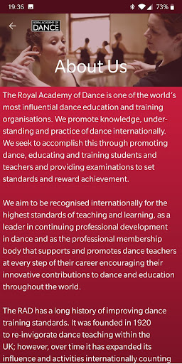 RAD Video is an authorised application of the Royal Academy of Dance and contains video content from the RAD’s Graded and Vocational Graded Examinations in Dance for the study and development of RAD teachers and students. These syllabi challenge students to meet the highest technical and artistic demands of current ballet training and performance, while also providing a way to find enjoyment, achievement and self-expression through dance.