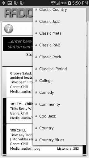 Powered by Shoutcast, this free app will allow you to search by genera, artist, station name...just about anything you can think of can be searched, and if it is on Shoutcast we will find it.