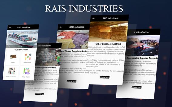 RAIS Industries are leaders in both its businesses of wholesale of secondhand clothes as well as trading in tropical sawn timber. Our core business is in the wholesale of quality used clothes from our factory in Australia.