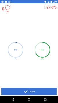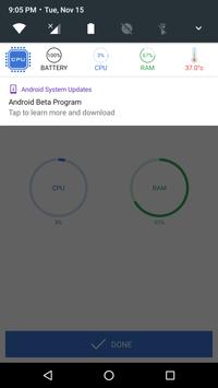 'RAM, CPU Monitor' app Monitors device temperature in real time, and displays temperature in app and in notification! if your device temperature is higher than normal temperature you can use COOL DOWN CPU feature of this app to decrease CPU temperature to normal level.
