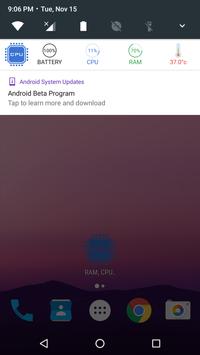 RAM and CPU Monitor provides notification widget, so you can monitor RAM and CPU usage on notification tray very convenient anywhere in your android device!