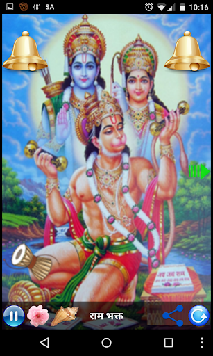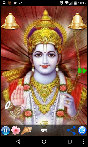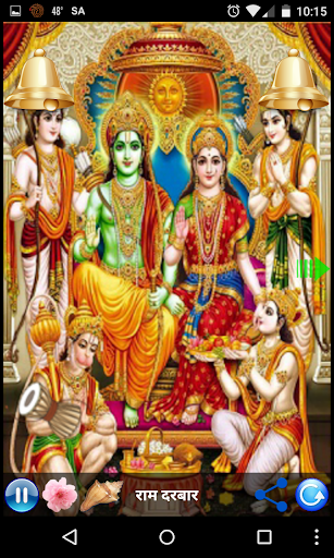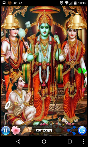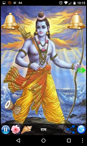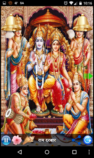 This app contains functionality as offering flowers Shower, Bell and Conch Shell with melody to lord Rama. User can auto re-play via just click on button.