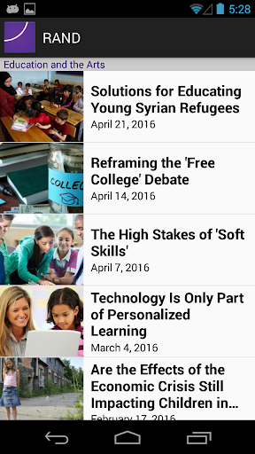 Keep up with the latest public policy research and analysis from the RAND Corporation. Our app puts RAND blog posts, research findings, multimedia, and experts at your fingertips in a streamlined, easy-to-use format.
