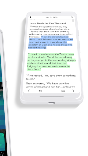 * Free Audio Bible: Click listen and you are instantly listening to the daily devotional plan. You can also look up any passage you want, the listen tab is in the bottom right hand corner at all times.