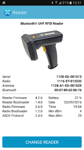 It requires the 1128 Bluetooth ® UHF reader with its torch or trigger handle options, the 1153 Bluetooth ® UHF reader for a back-of-hand option, the 1166 Bluetooth ® Rugged UHF reader or the new 2128 (IH21) Bluetooth ® UHF reader with ePopLoq USB connectivity.